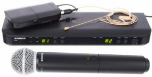 - mit BLX1 Taschensender, SM58 Handsender und MX153 Earset-Mikrofon