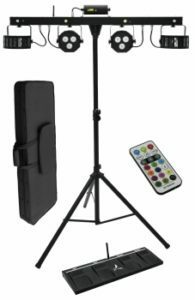 Mit dem eurolite FX Licht lassen sich bereits spannende, raumfüllende Lichteffekt für Parties, Firmenfeste und Unterhaltungsveranstaltungen aller Art realisieren. Komplett inkl. Stativ und Transporttasche die perfekte „Ready to Go“ Lösung insbesondere für Unterhaltungskünstler und mobile DJs.